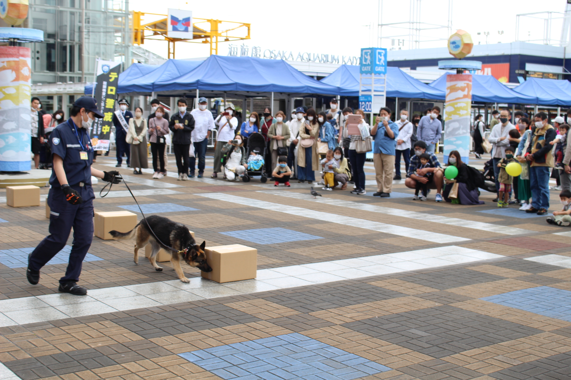 大阪税関は、5月14日(土曜日)、海遊館前イベント広場において大阪府・近畿厚生局麻薬取締部と合同でテロ関連物資や薬物の密輸撲滅・薬物乱用防止キャンペーンを実施した。税関イメージキャラクターのカスタム君がPRする中、密輸撲滅や密輸情報の提供を呼びかけるリーフレット等を配布し、不正薬物等の運び屋にならないよう注意を呼びかけた。大阪府、近畿厚生局麻薬取締部からは、若者の大麻使用が広がっている現状や違法薬物の現状についての説明があり、「もずやん」「「ダメ。ゼッタイ。」君」と一緒に薬物乱用防止を訴えた。また、麻薬探知犬のデモンストレーションを行い、多くの方々に見ていただいた。