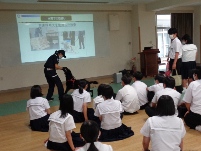 大阪税関は、6月9日(木曜日)、大阪府立懐風館高等学校において、薬物乱用防止講演会を実施した。講話を通じて、薬物や薬物依存の恐ろしさについての注意喚起を行った。この他、薬物の密輸取締りをはじめとした税関業務の説明や、麻薬探知犬のデモンストレーションを実施した。