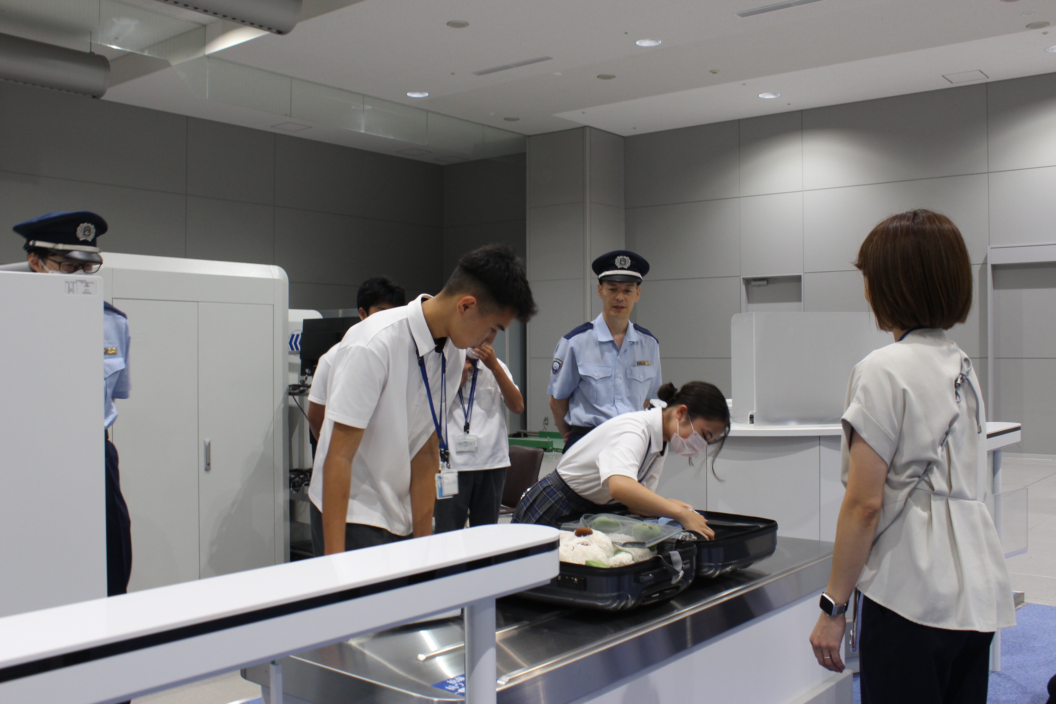 大阪税関関西空港税関支署は、9月8日(金)、泉南市立泉南中学校の生徒4名に対し、職業体験学習を実施した。取締業務である制限区域内の巡回や旅具検査業務で使用する検査機器、麻薬探知犬のデモンストレーション等を見学した。