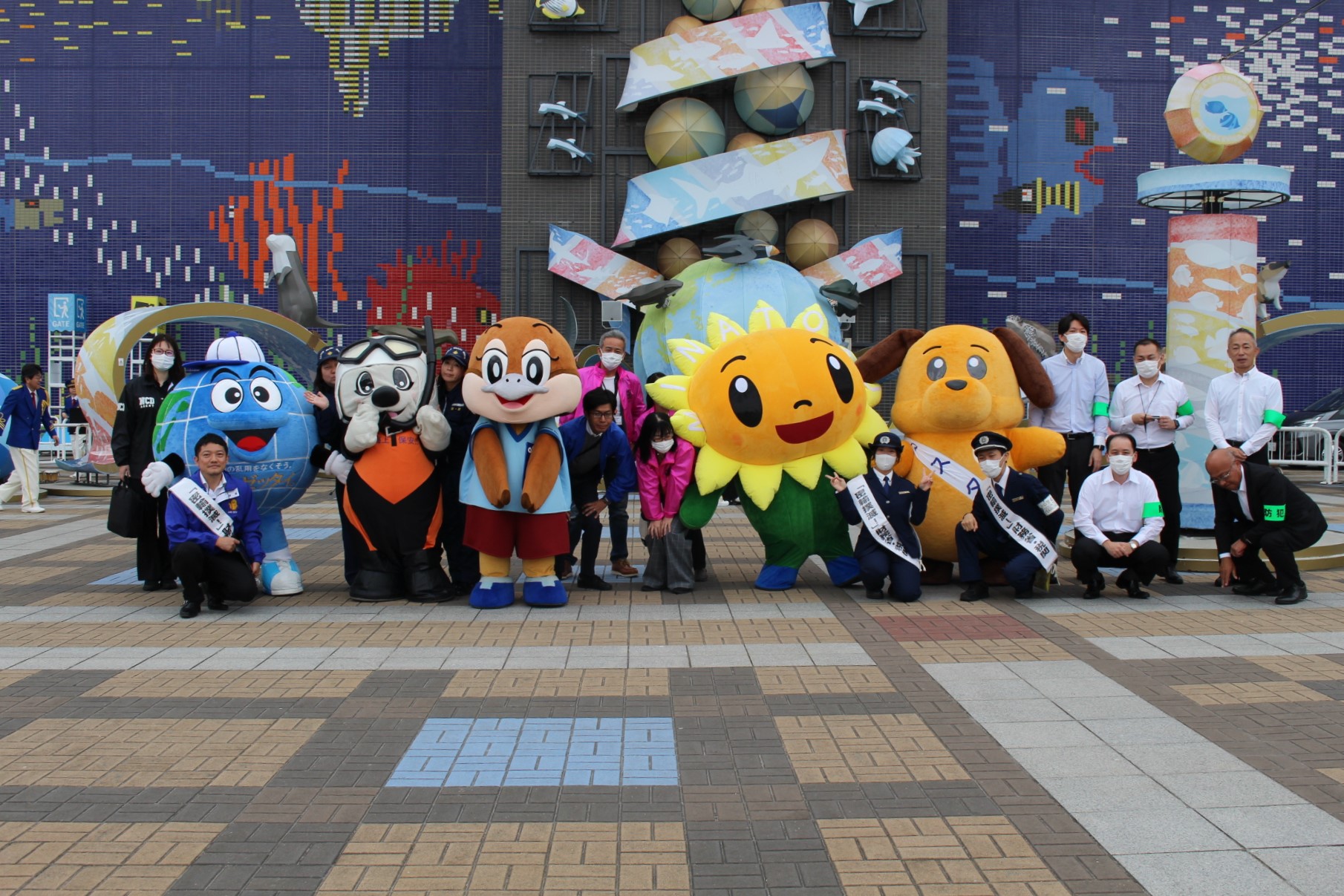大阪税関は、10月14日(土曜日)、海遊館前イベント広場において大阪府・近畿厚生局麻薬取締部・大阪府警察本部・大阪海上保安監部・大阪市港区役所と合同でテロ関連物資や薬物の密輸撲滅・薬物乱用防止キャンペーンを実施した。税関イメージキャラクターのカスタム君ほか、各機関のキャラクターがPRする中、密輸撲滅や密輸情報の提供を呼びかけるリーフレット等を配布し、不正薬物等の運び屋にならないよう注意を呼びかけた。また、近年、若者の大麻使用が広がっている現状や違法薬物の現状について説明し、薬物乱用防止を訴えた。そのほか音楽隊の演奏や麻薬探知犬のデモンストレーションも行い、多くの方々に見ていただいた。