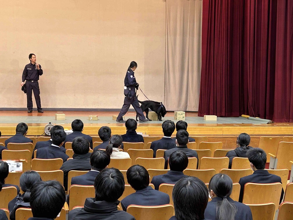 大阪税関は、1月19日(木曜日)、大阪府立高津高等学校において、薬物乱用防止講演会を実施した。講話を通じて、薬物や薬物依存の恐ろしさについての注意喚起を行った。この他、薬物の密輸取締りをはじめとした税関業務の説明や、麻薬探知犬のデモンストレーションを実施した。