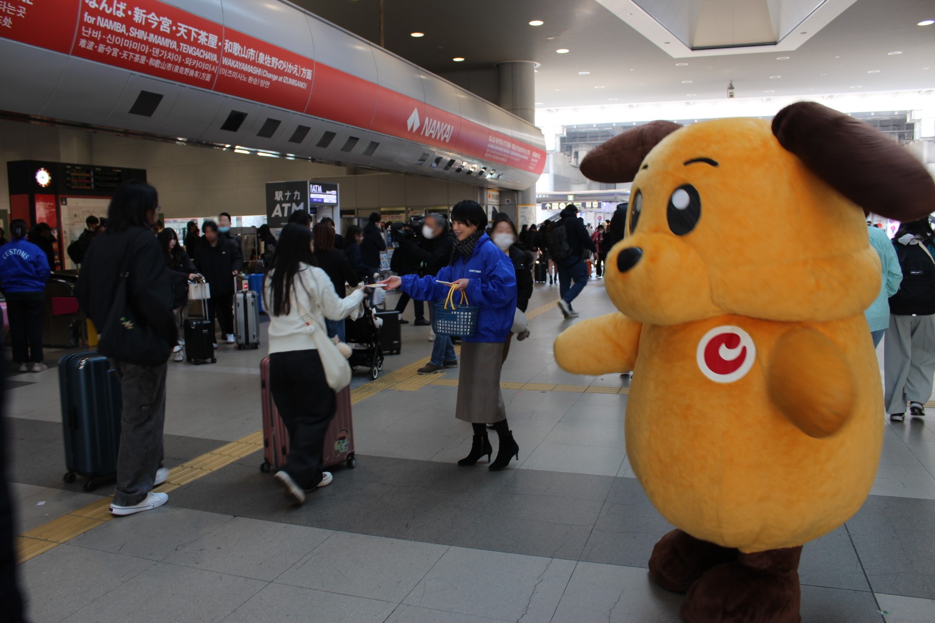 大阪税関は、3月10日(月)、関西空港駅改札前コンコースにて、旅客、送迎者及び関西空港で働く従業員を対象に、3月10日(月)から14日(金)にかけて、知的財産侵害物品の取締りを強化する旨の周知及び税関検査への協力や情報提供を呼び掛けた。