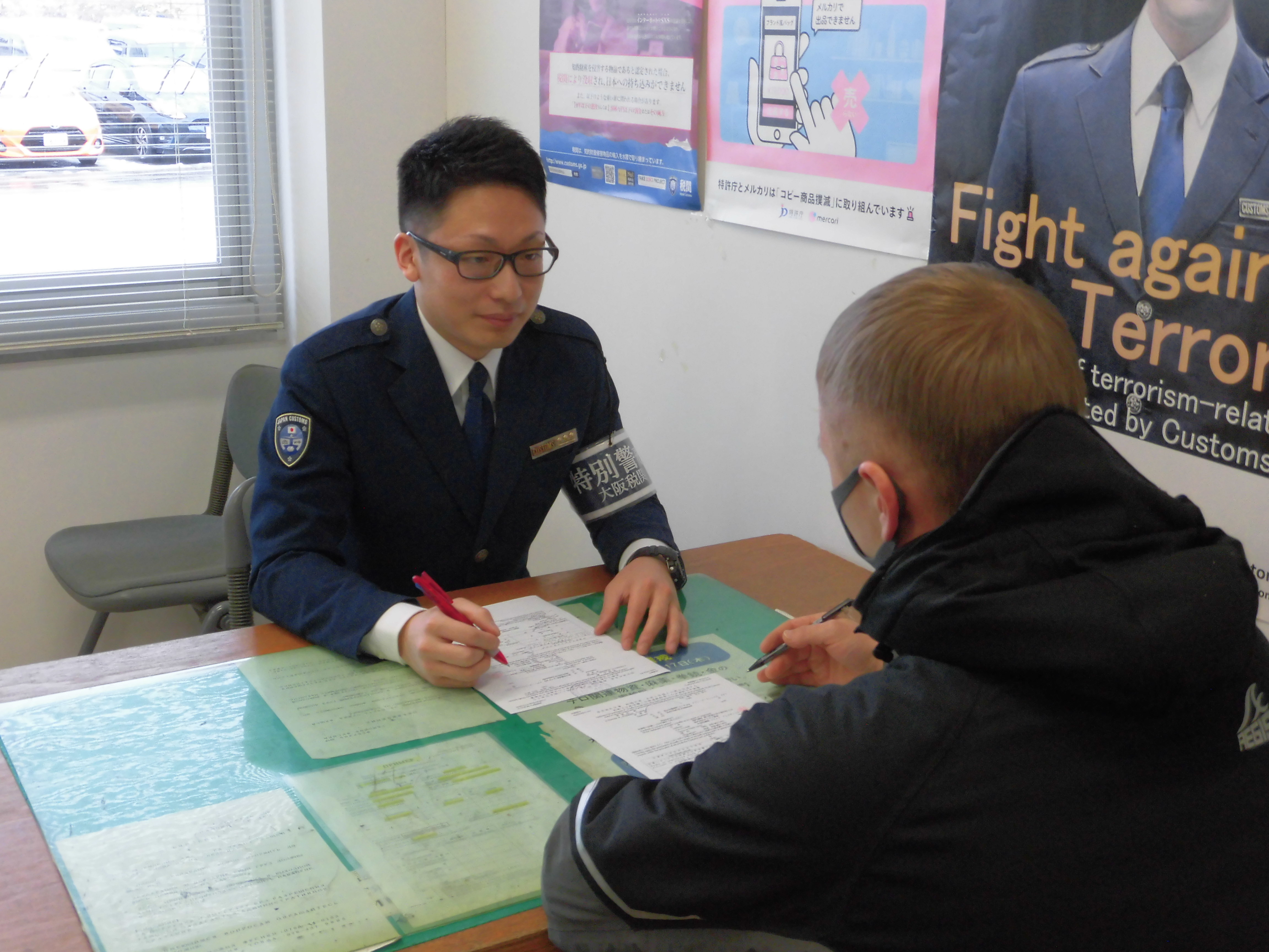 また、大阪府内の官署と比べて職員が少人数なので、上記の海港取締りだけでなく様々な業務を行っています。具体的には、海外からの航空機旅客の手荷物検査、輸出入される車両やコンテナ等の貨物の検査、摘発された密輸入事件の調査、地域イベントへの参加や学校での講演等の広報活動などがあります。