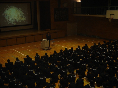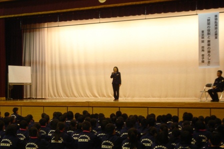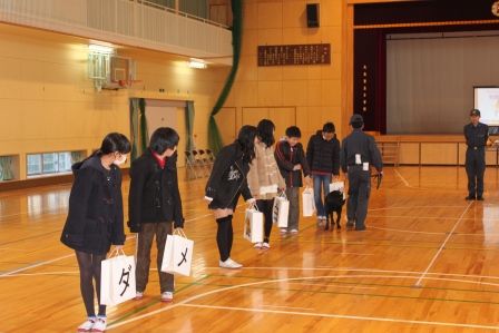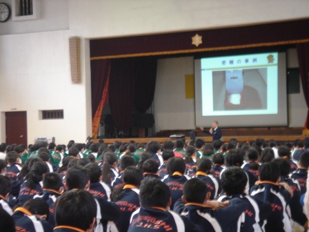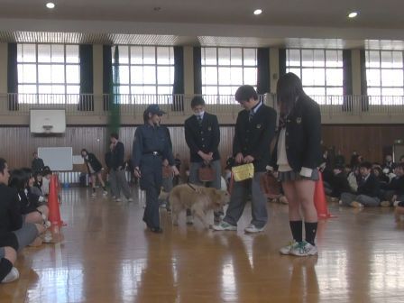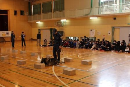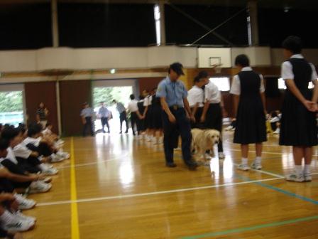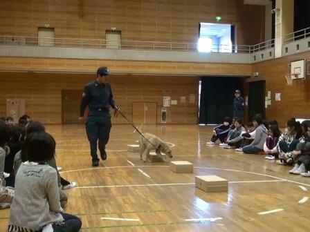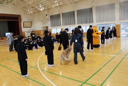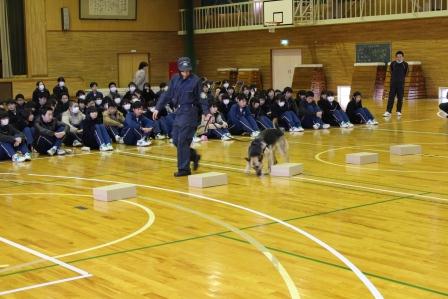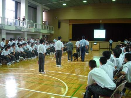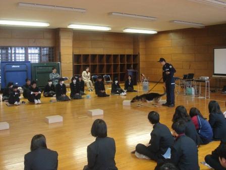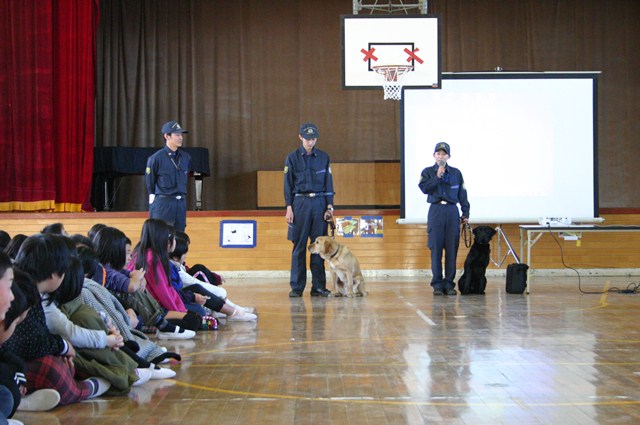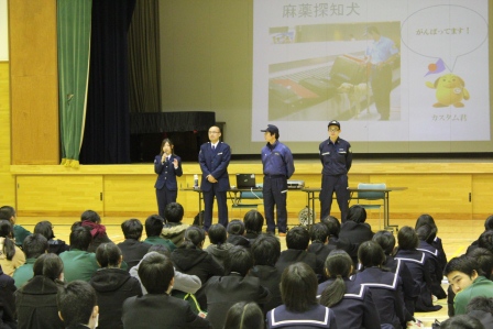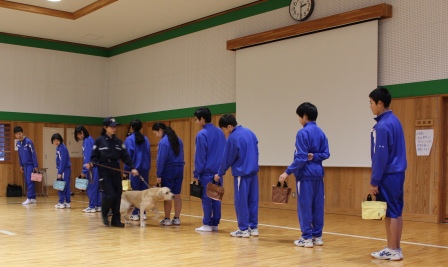 新潟税関支署は、新潟県加茂市の市立若宮中学校(全校140名)において、税関教室を開催し、「麻薬の恐ろしさ」や「税関の仕事」について説明するとともに、麻薬探知犬(ハウル号、フウ号)によるデモンストレーションを行い、薬物乱用防止及び密輸撲滅のための広報活動を実施した。