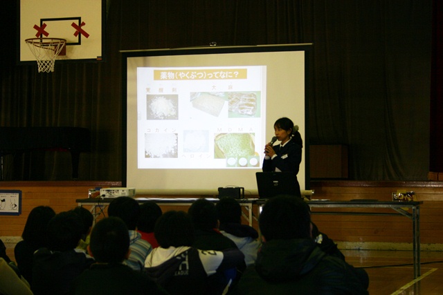 新潟税関支署は、新潟県長岡市の市立北辰中学校(全校97名)及び市立寺泊中学校(1年生82名)において、税関教室を開催し、「麻薬の恐ろしさ」や「税関の仕事」について説明するとともに、麻薬探知犬(ファントム号、シータ号)によるデモンストレーションを行い、薬物乱用防止及び密輸撲滅のための広報活動を実施した。
