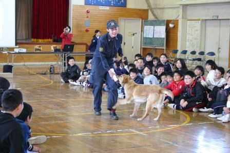 東京税関は、江東区立豊洲小学校において、5,6年生児童約230名を対象に税関教室を実施した。「税関の仕事」、「不正薬物の恐さ」について説明するとともに、麻薬探知犬(カイ号、ラブ号)のデモンストレーションを実施し、税関業務と薬物乱用防止のための広報活動を実施した。