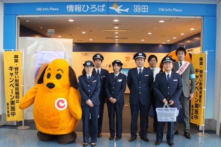 東京税関羽田税関支署は、羽田空港国際線ターミナルにおいて、警視庁東京空港警察署と合同でキャンペーンを実施した。出国旅客に対しリーフレット等を配布し、不正薬物等の密輸防止と撲滅への理解と協力を呼びかけた。