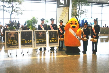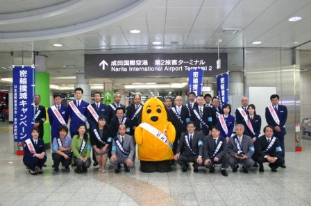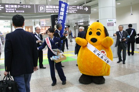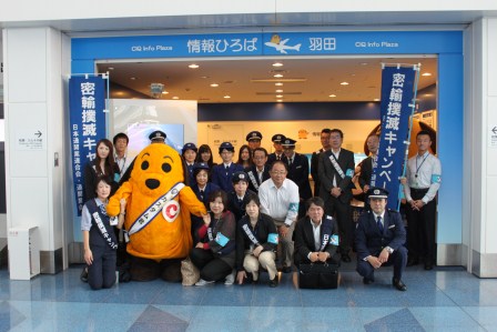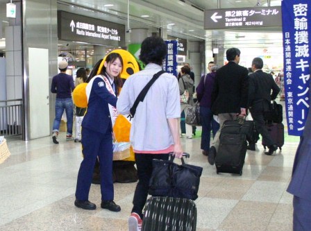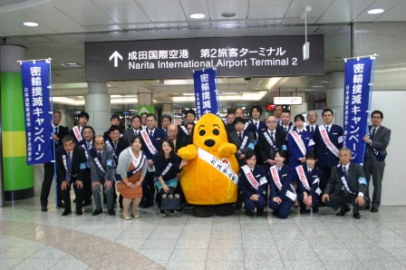 東京税関成田税関支署は、成田国際空港第1旅客ターミナルにおいて「密輸防止キャンペーン」を実施した。海外へ出国する旅客に対し「運び屋にされないように、気をつけて」と呼びかけたり、密輸に関する情報提供依頼を行うとともに、チラシと広報グッズを配布した。
