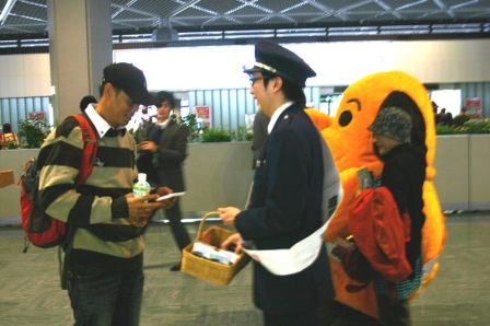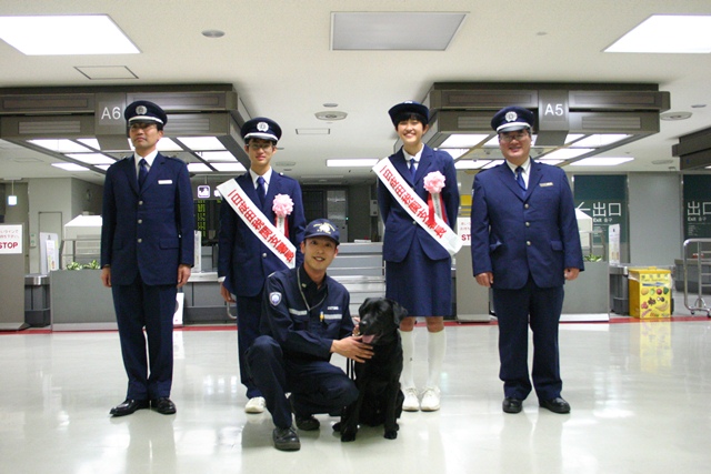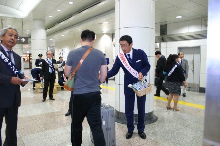 東京税関成田税関支署と成田航空貨物出張所は、東京通関業会成田支部が主催する「密輸撲滅キャンペーン」に参加し、朝の通勤者や出発客で賑わう空港第2ビル駅改札出口コンコースでキャンペーングッズとチラシを配布して密輸に関する情報提供を呼びかけた。