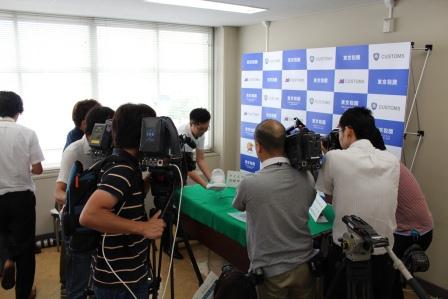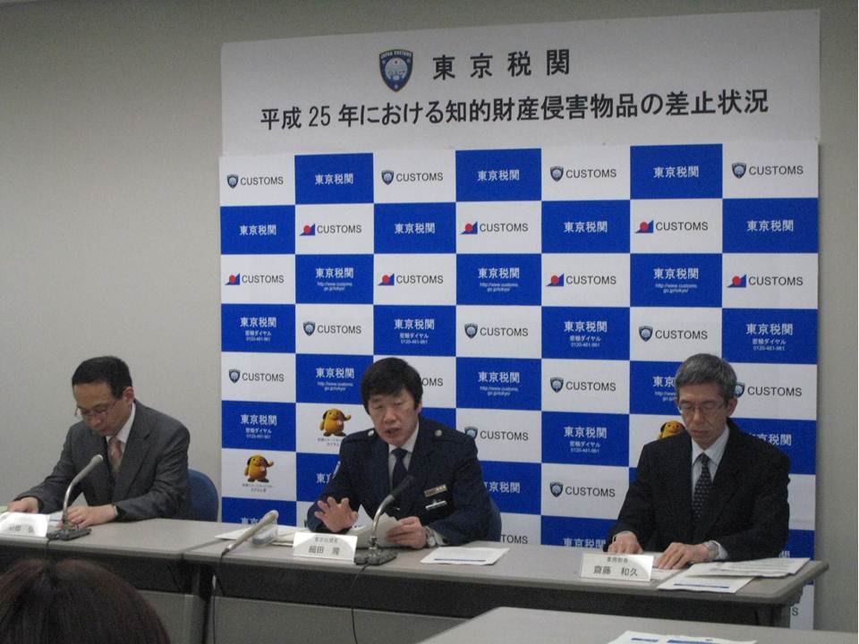 東京税関は、平成25年の東京税関における知的財産侵害物品の差止状況について報道発表した。発表に合わせて、差し止められた知的財産侵害物品の展示及び説明を行ったところ、報道機関から多数の質問があり、関心の高さが伺えた。