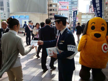 東京税関芝浦出張所は、監視部及び芝浦通関協議会の協力のもと、JR田町駅東口にて、年末特別警戒期間に併せて税関の水際取締に対する国民の理解と協力及び密輸情報の提供依頼を目的とした街頭キャンペーンを実施した。