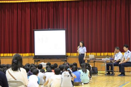 東京税関成田税関支署は、匝瑳市立栄小学校において、5・6年生約70名を対象に税関教室を実施した。 「税関の仕事」、「麻薬の恐ろしさ」や「ニセモノ(知的財産侵害物品)」について説明を行い、麻薬探知犬(ビト号、ドム号)のデモンストレーションを実施するなど、薬物乱用及び密輸撲滅のための広報活動を実施した。