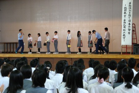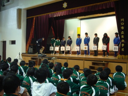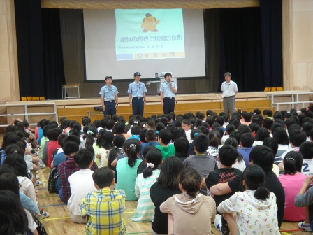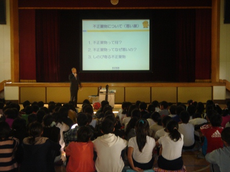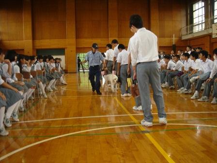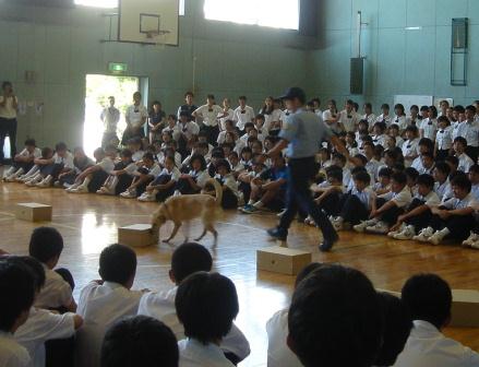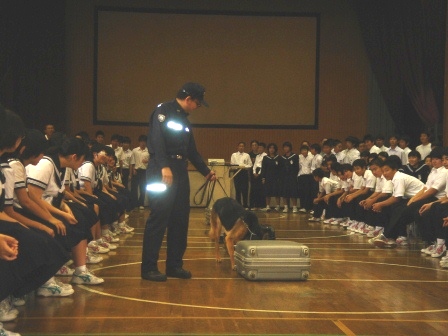 東京税関は、川口市立西中学校において、全校生徒約500名を対象に税関教室を実施した。「税関の仕事」、「不正薬物の恐さ」について説明するとともに、麻薬探知犬(タロウ号、アラシ号)のデモンストレーションを実施し、税関業務と薬物乱用防止のための広報活動を実施した。