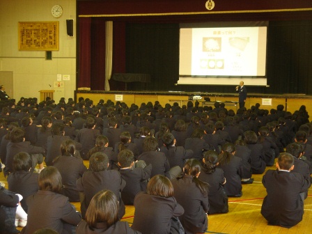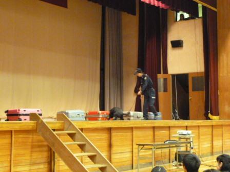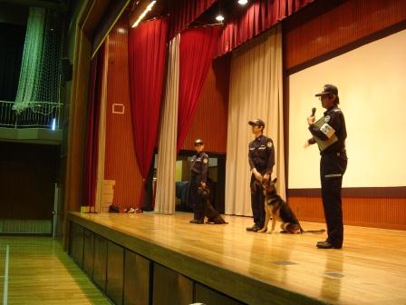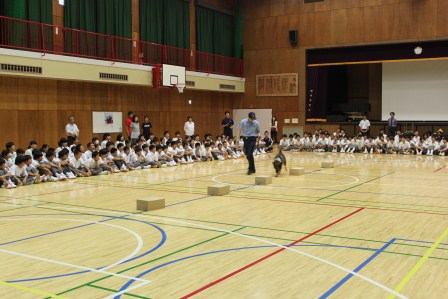 東京税関は、川口市立南中学校において、全校生徒約600名を対象に税関教室を実施した。「税関の仕事」、「不正薬物の恐さ」について説明するとともに、麻薬探知犬(マーリン号、ヨモギ号)のデモンストレーションを実施し、税関業務と薬物乱用防止のための広報活動を実施した。