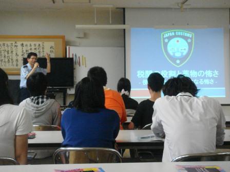 東京税関酒田税関支署では山形県立庄内農業高等学校2学年の生徒・教職員約90名を対象に税関教室を開催し、税関の業務と役割、麻薬等の不正薬物や危険ドラッグの怖さ、密輸事例について説明を行い、薬物乱用防止のための啓蒙活動を実施した。