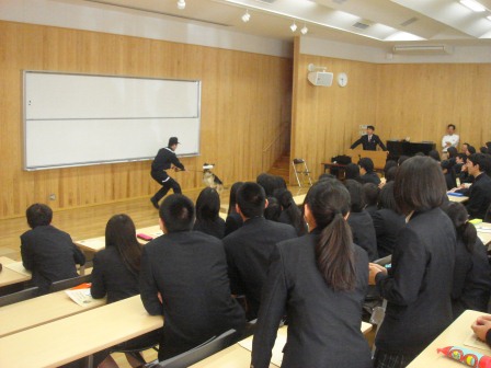 東京税関成田税関支署は、千葉経済大学附属高等学校において3年生約510人を対象に税関教室を実施した。「税関業務・薬物乱用防止教室」と題し、税関の仕事や薬物の恐ろしさ、知的財産侵害物品の取締状況について説明したほか、麻薬探知犬(ケイ号、ギニー号)のデモンストレーションを行い、税関業務と薬物乱用防止のための広報活動を実施した。