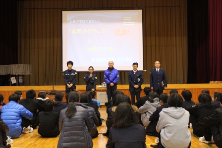 新潟税関支署佐渡監視署は、島内の佐渡市立・佐和田中学校(3年生98名)、南佐渡中学校(3年生48名)、両津中学校(3年生76名)を対象に税関教室を開催し、「麻薬の恐ろしさ」や「税関の役割」について授業を行い、薬物乱用防止の呼びかけと密輸阻止への取り組みを啓発した。