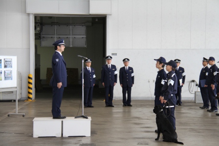 東京税関では、貨物や旅客の動きが活発になる年末期を迎え、覚醒剤等不正薬物の密輸入事犯や知的財産侵害物品の不正輸入に厳正に対処するため、平成26年12月10日から19日までを「年末特別警戒」の期間として設定し、その出陣式を実施した。