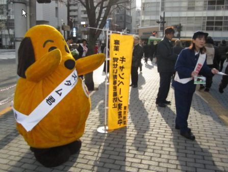 東京税関監視部埼玉方面事務所は、JRさいたま新都心駅において、社団法人埼玉県医薬品配置協会が主催する麻薬・覚せい剤乱用撲滅キャンペーンに参加。雲一つない晴天の中、隣接するさいたまスーパーアリーナでは成人式が行われており、振り袖やスーツ姿の新成人にカスタム君も寒風にもめげず張り切ってアピールし、密輸情報の提供及び麻薬・覚せい剤乱用撲滅を呼びかけた。