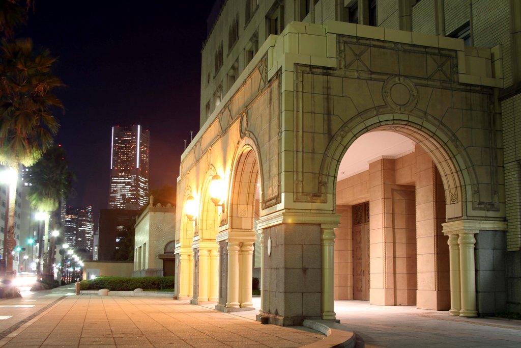 横浜市の歴史的建造物にも認定され、 MM21から山下公園につづく景観 への貢献を考えたライトアップ演出 が行われている。 4つのポイントから塔全体を一様に 照らす方法を採り、 冬季はナトリウム灯を用いて 温かみを表現(※写真上)、 夏季はメタルハライド灯によって 涼しげな表情を出すよう 工夫されている(※写真下)。 |