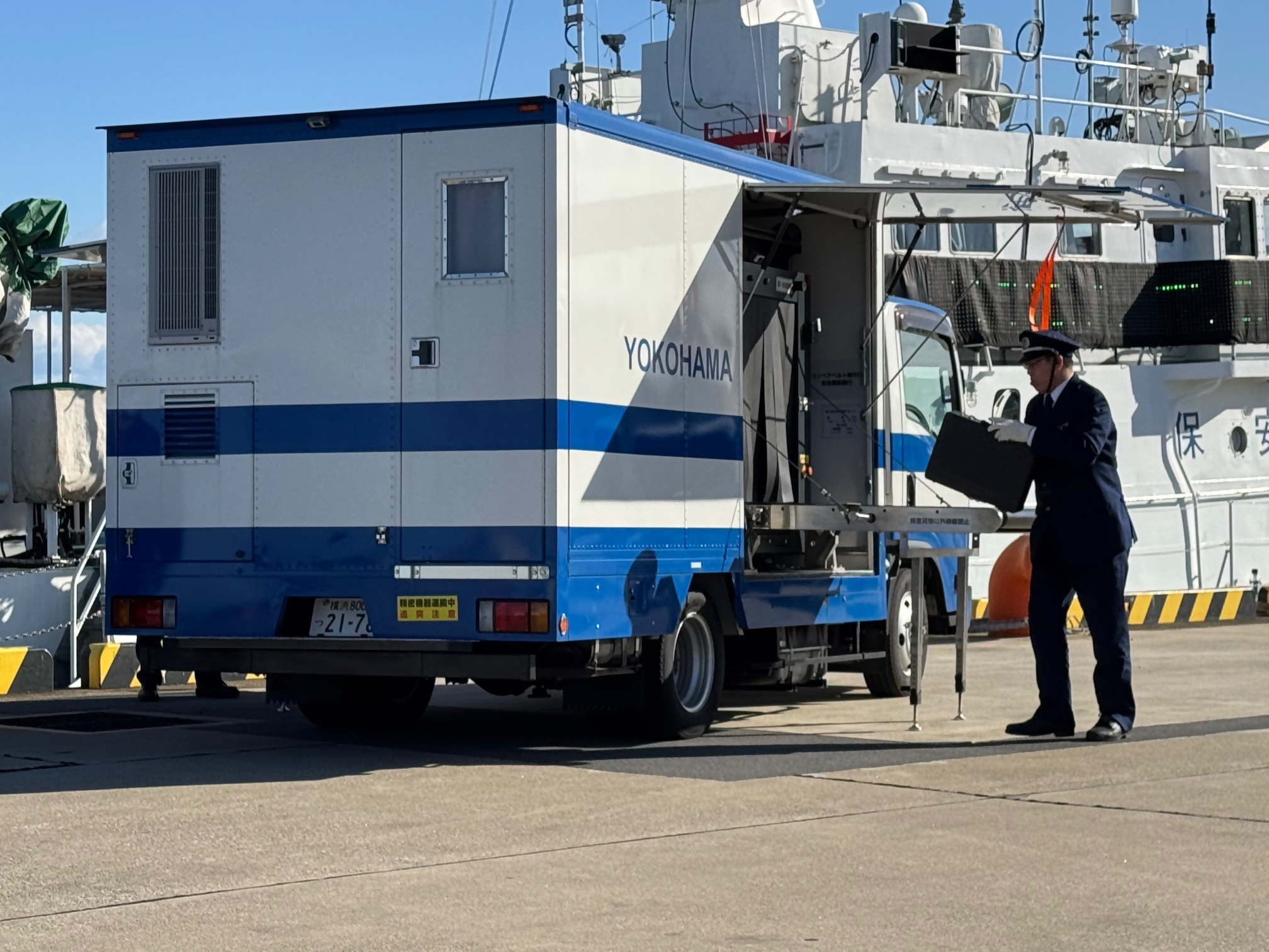 横浜税関は、2025年12月2日に横浜港大さん桟橋ふ頭において、「年末特別警戒出陣式」を実施するとともに、巡回車及び監視艇が取締に出動する様子を報道機関へ公開しました。