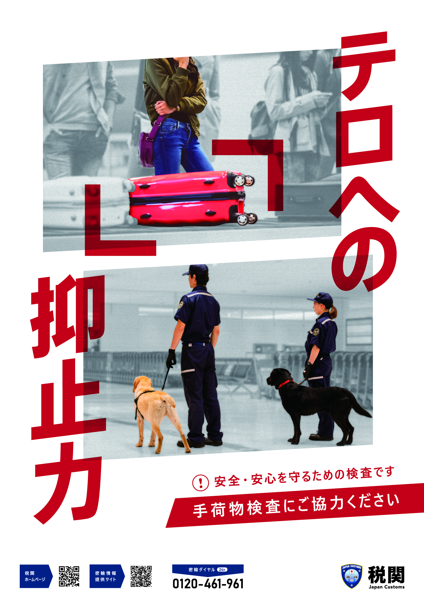 更なる水際での取締強化のため、密輸情報ダイヤル(フリーダイヤル0120-461-961)を開設して、皆さんからの情報提供をお待ちしています。