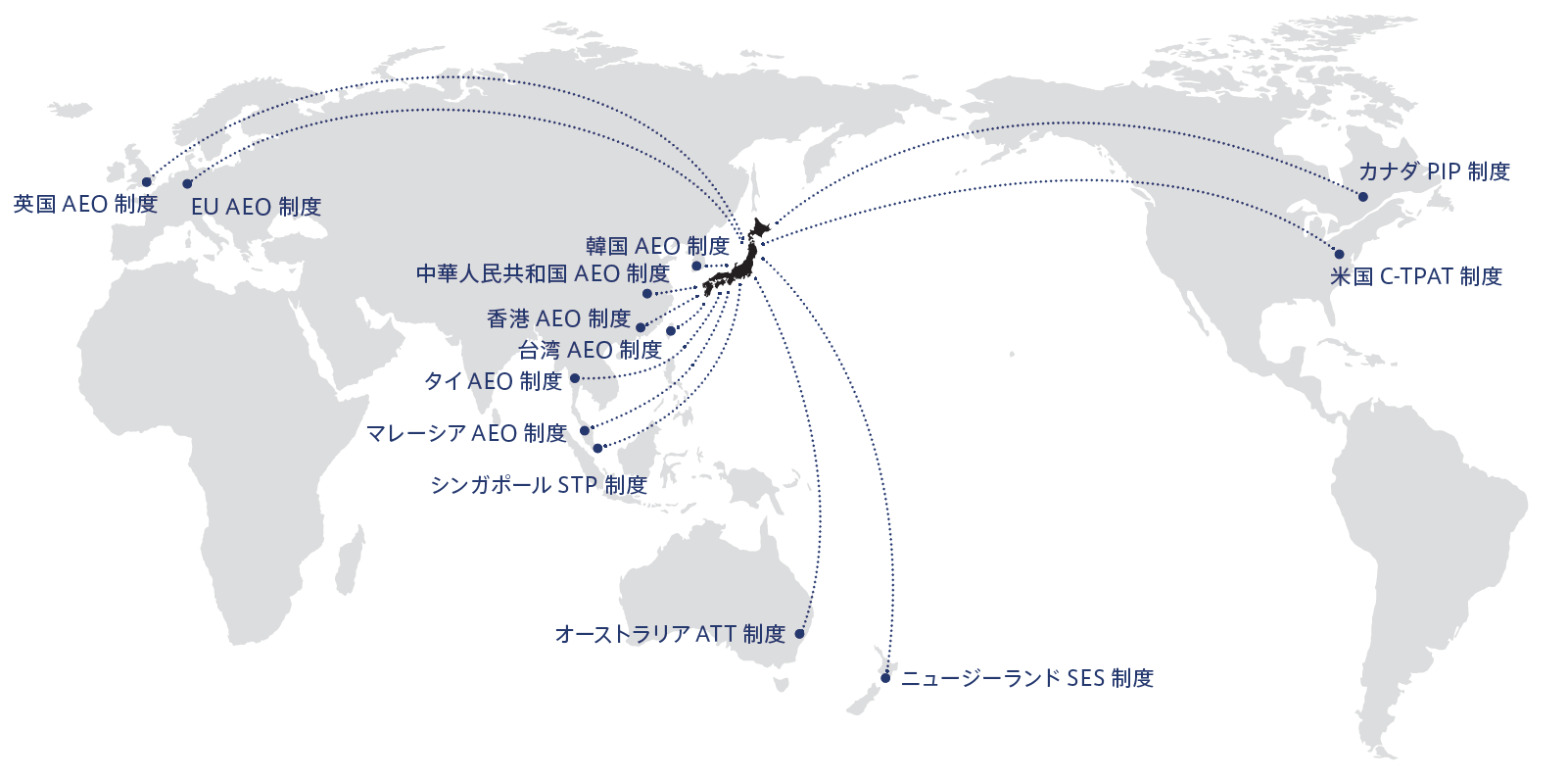 現在、世界80以上の国・地域において導入されており、我が国も2006年3月に輸出者を対象にAEO制度を導入しました。